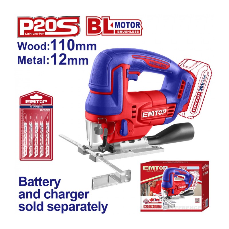 EMTOP - Aku přímočará pila 20V 110mm solo