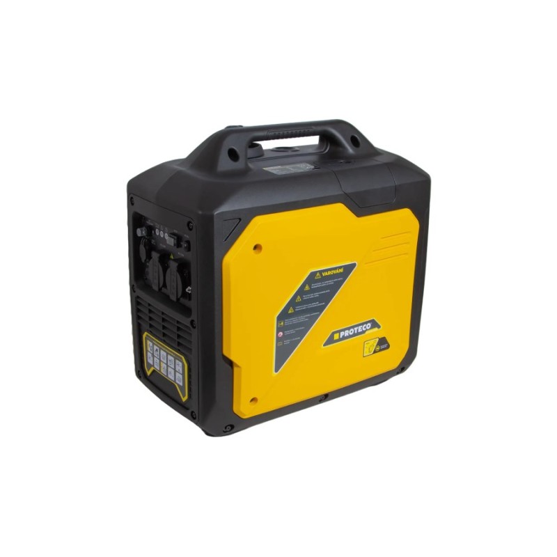 Invertorová elektrocentrála PROTECO 2,2kW je skvěle vybavený, skladný a tichý zdroj proudu na chatu, chalupu nebo jako pojistka nejvyšší nouze při výpadku elektřiny. Bez jakýchkoliv problémů zvládne napájet i citlivá elektronická zařízení. Disponuje nádrží o objemu 6 litrů, nálevkovým uzávěrem a startovacím provazem, pomocí nějž se nastartuje jako běžné benzínové zahradní nářadí. Velice snadno se převáží a na plnou nádrž dokáže produkovat proud až 8,5 hodiny. Je vybavena třemi typy výstupu - 230 V, 12V a USB. Je postaven na nejmodernější technologii. Motor je propojen s alternátorem, vyrábějícím střídavý proud. Ten však, jako u běžných generátoru, nenapájí spotřebiče přímo, ale je nejdříve přetransformován na stejnosměrný proud a potom je pomocí nejmodernější elektroniky, mikroprocesoru a high-tech magnetů znovu převedenna střídavý proud. Generovaná energie je tedy pomocí elektroniky invertoru upravena tak, aby bylo na výstupu přesně požadované napětí i frekvence. Charakteristika výstupního napětí je proto dokonce nezřídka kvalitnější, než v běžné elektrické zásuvce, která může být často ovlivněna různými rušivými vlivy. Invertorovou elektrocentrálou lze tedy napájet i nejcitlivější elektronika. Díky řízenému převodu je křivka převodu neobyčejně hladká a pravidelná. Nemůže být ovlivněna kolísáním otáček motoru jako u jiných centrál. Díky tomu můžete bez obav připojit běžné elektrické nářadí, zdroje světla, veškeré spotřebiče, které obsahují mikroprocesor, citlivý na kvalitu proudu - telefony, počítače, konzole, kuchyňská zařízení apod. Elektrocentrála PROTECO je vybavena technologií úspory paliva, kdy si motor při nízké zátěži upraví otáčky. Díky tomu lze dosáhnout až 40% úspoře paliva. Další užitečnou vlastností, která chrání motor před zničením je funkce automatického vypnutí, pokud hladina oleje klesne pod požadovanou mez a rovněž ochrana proti přetížení. Elektrocentrála je vhodná k užívání v kempu, na lodi, venkovní párty, protože se vyznačuje velmi nízkou hlučností agregátu. Nežádoucí vibrace jsou utlumeny pryžovými nožičkami. Velké madlo je vhodné pro přenášení a kompaktní design uspoří skladovací prostor.